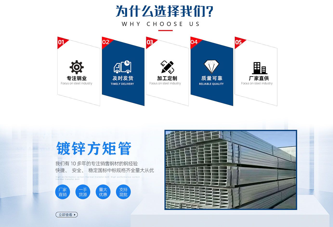 天津奧冶鋼鐵銷售有限公司長期銷售熱鍍鋅無縫鋼管,大口徑熱鍍鋅無縫管,鍍鋅無縫管,熱鍍鋅方矩管,鍍鋅方矩管等各種鍍鋅產品,廣泛應用于建筑、機械、煤礦、化工、電力、鐵道車輛、汽車工業、公路、橋梁、集裝箱、體育設施、農業機械、石油機械、探礦機械等制造工業。鍍鋅鋼管表面有熱浸鍍或電鍍鋅層的焊接鋼管。鍍鋅可增加鋼管的抗腐蝕能力,延長使用壽命。鍍鋅管的用途很廣,除作輸水、煤氣、油等一般低壓力流體的管線管外,還用作石油工業特別是海洋油田的油井管、輸油管,化工焦化設備的油加熱器、冷凝冷卻器、煤餾洗油交換器用管,以及棧橋管樁、礦山坑道的支撐架用管等。熱鍍鋅管是使熔融金屬與鐵基體反應而產生合金層,從而使基體和鍍層二者相結合。熱鍍鋅是先將鋼管進行酸洗,為了去除鋼管表面的氧化鐵,酸洗后,通過氯化銨或氯化鋅水溶液或氯化銨和氯化鋅混合水溶液槽中進行清洗,然后送入熱浸鍍槽中。熱鍍鋅具有鍍層均勻,附著力強,使用壽命長等優點。熱鍍鋅鋼管基體與熔融的鍍液發生復雜的物理、化學反應,形成耐腐蝕的結構緊密的鋅一鐵合金層。合金層與純鋅層、鋼管基體融為一體,故其耐腐蝕能力強。本公司將面向客戶的不同要求,努力做好產品的售前售后服務工作,愿以良好服務與各界朋友真誠合作,質量出效益,信譽出市場。...